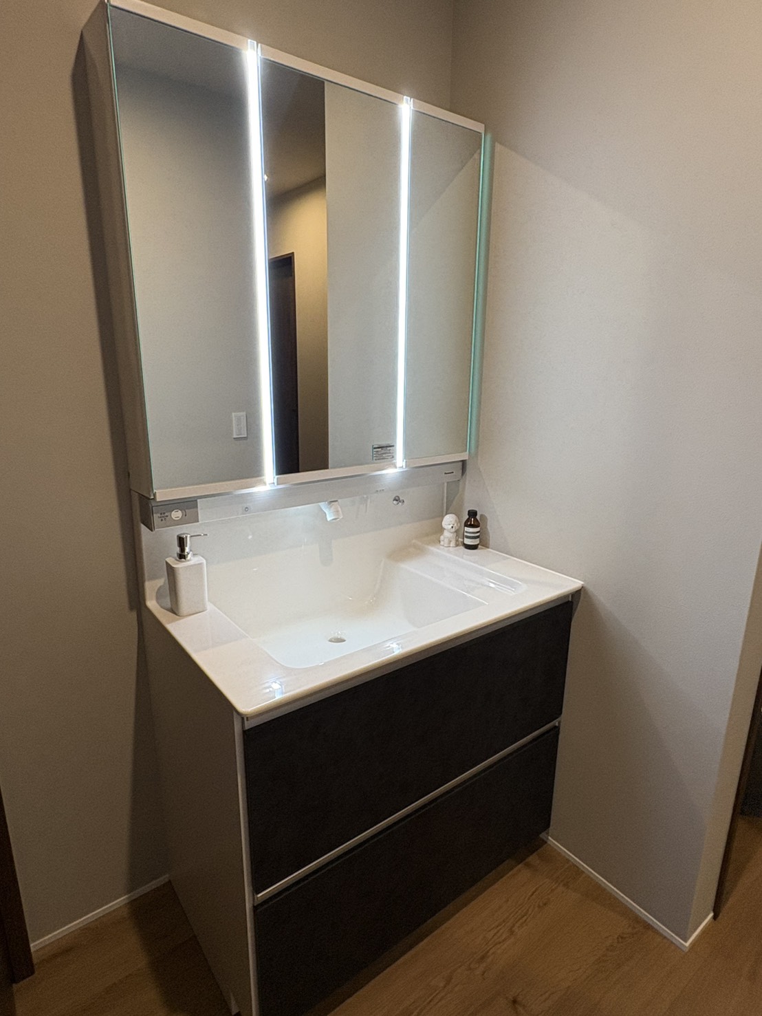 一方、奥様のこだわりは広々としたリビングと独立した洗面台。