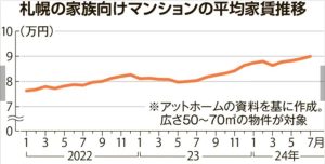 ※余談ですが、2024年現在札幌のマンション家賃が上昇し、なんと「1年で1割超」になっています。