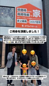 これまで住宅営業を通じて、インスタを使用したことがなく(アナログ人間 笑)、カワムラに入社し、初めてインスタを開設いたしました。