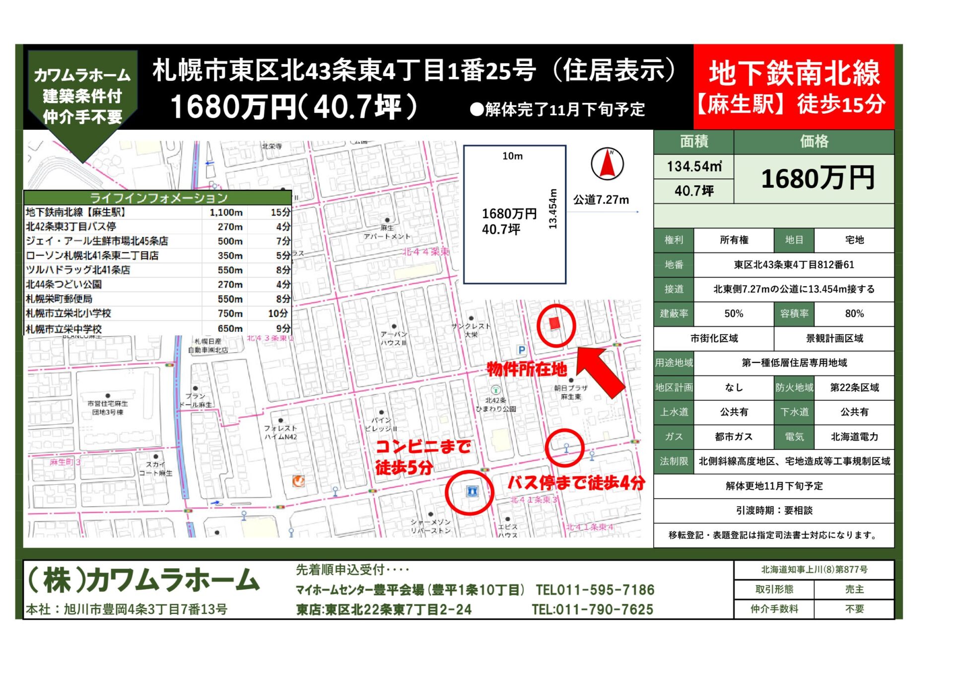 | 交通 | 地下鉄南北線【麻生駅】徒歩15分 | ||