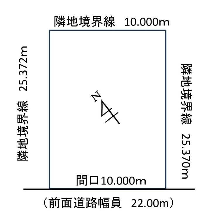 | 接道状況 | 北東向き 前面道路幅 22.00 間口 10.000m 奥行 25.372m |
