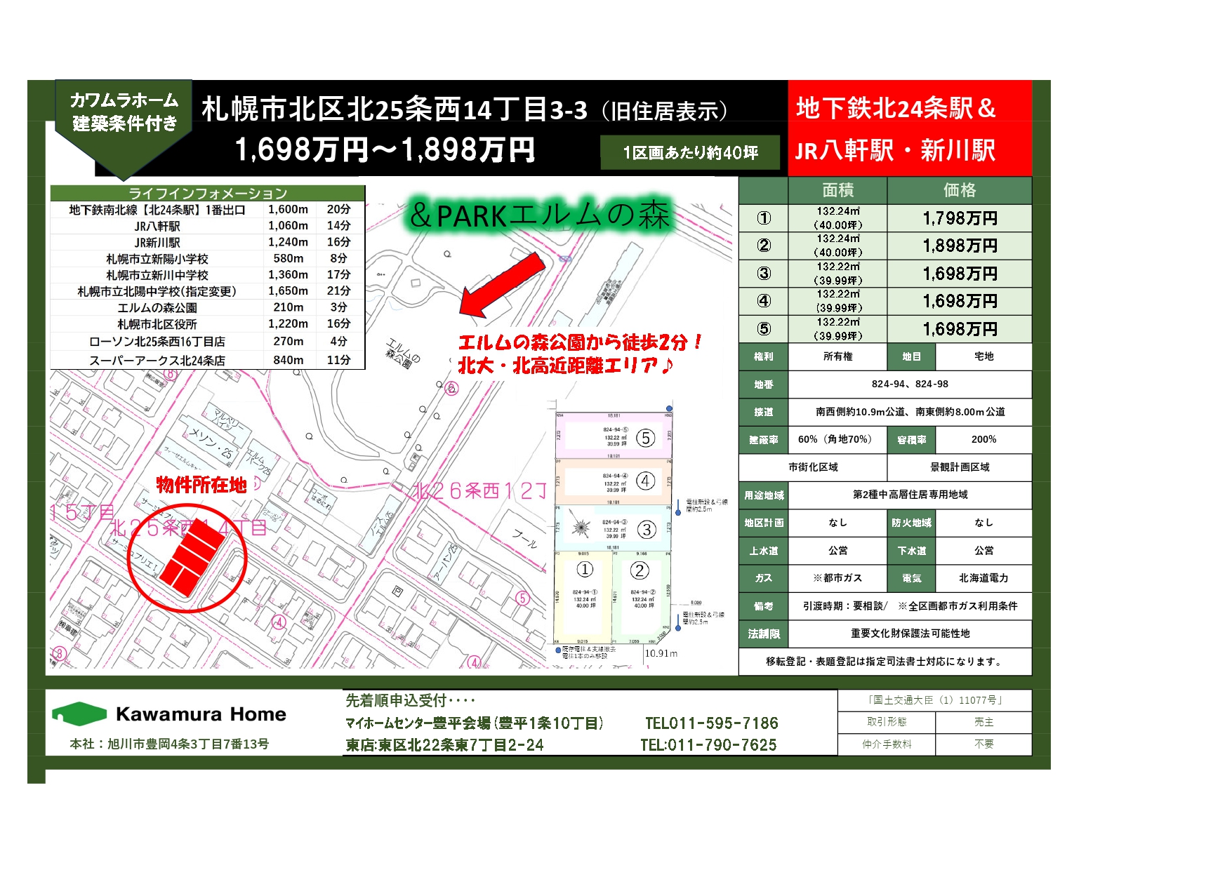 【建築条件付き土地】札幌市北区北25条西14丁目3-3(旧住居表示)