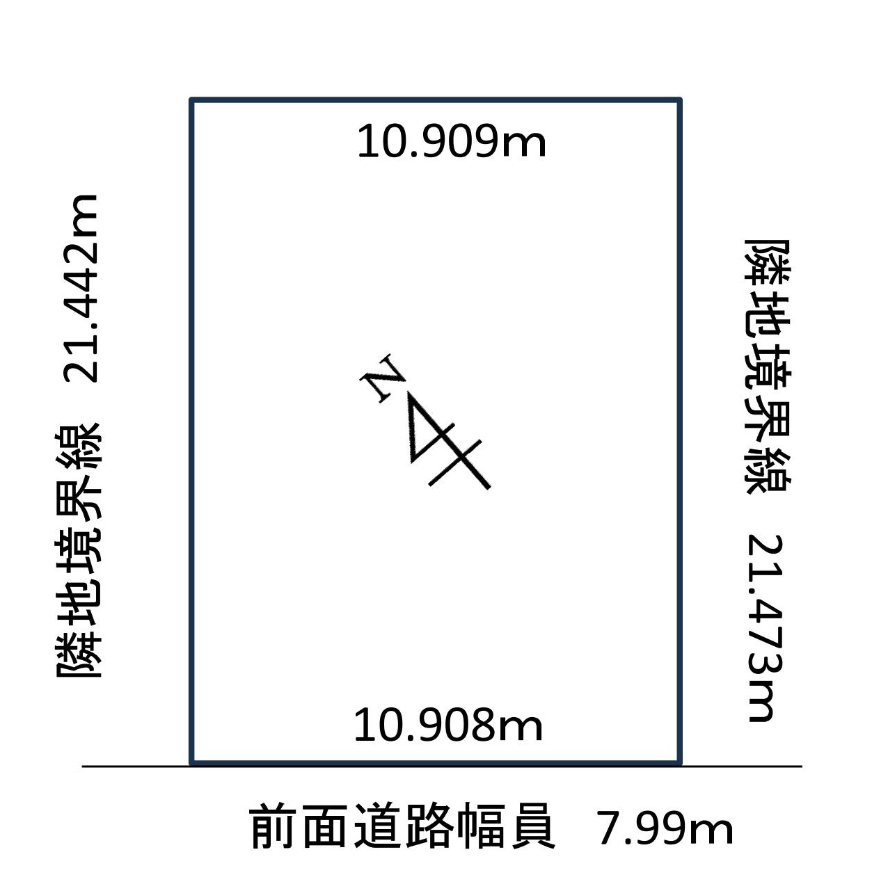 | 接道状況 | 南西向き 間口10.909/奥行21.473/前面道路7.99m |