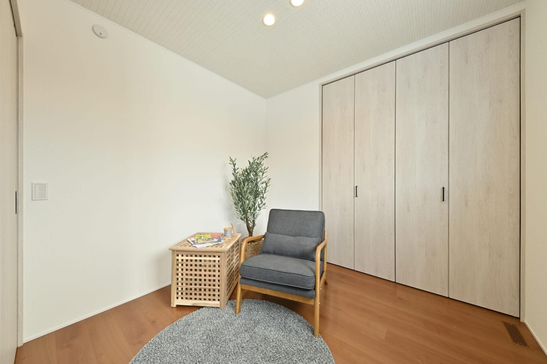 リビング横洋室はお子様のプレイスペースにすれば、キッチンからも見守れて安心。来客時には扉を閉めて、大切なお客様を静かにお迎えする独立したお部屋に早変わりします。